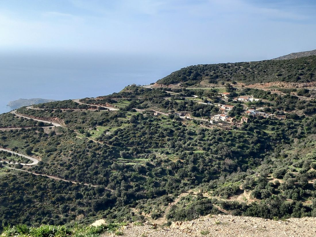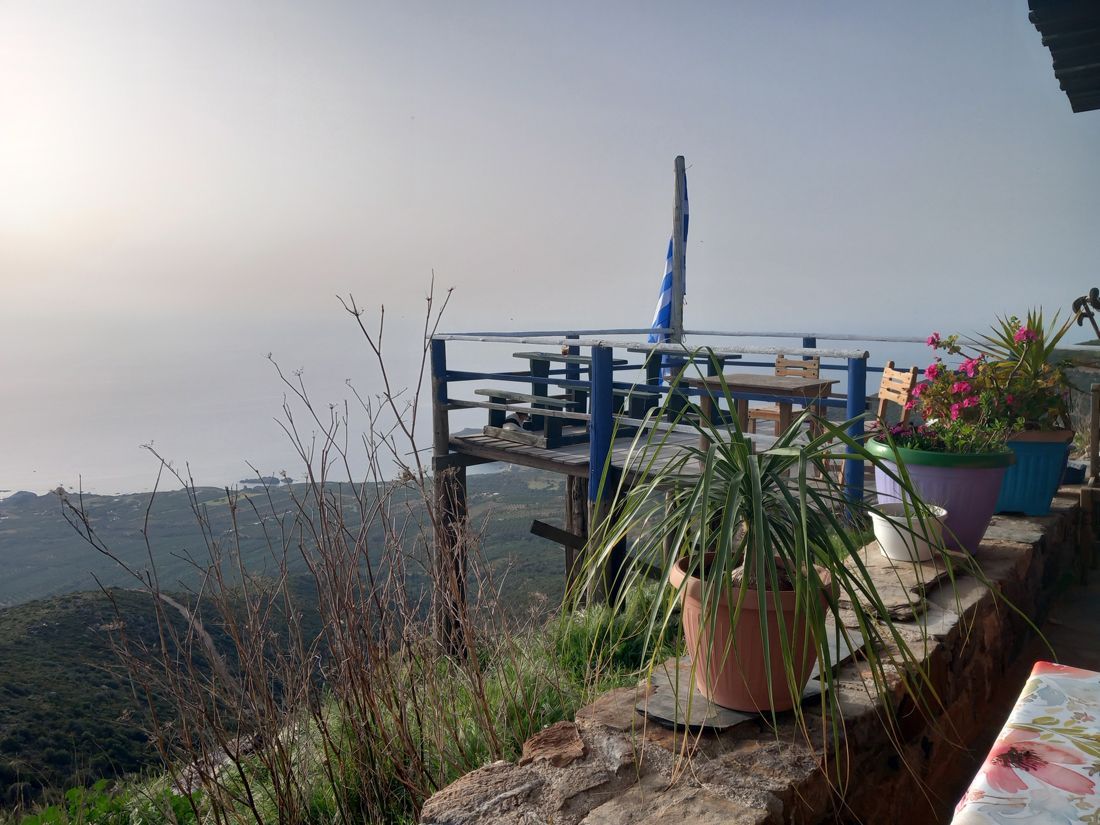 We still have some time, we want to explore the west of Crete a bit more, then take the ferry from Kissamos to the Peloponnese. We spend the whole day on the road, pass Festos and Agia Galini, up to Rethimnon, on the highway to Chania, to Kissamos, then down the west coast. We have booked accommodation in a tiny village called Amigdokefali, in a secluded cottage a few kilometers from Elafonisi. It's called Areti Sea View Mountain Cottage, the view down to the coast is magnificent and the hosts, an elderly couple, are very nice and hospitable. They invite us for dinner. However, they only speak Greek, really only. We have learned a lot in the past few months, but when Cretans confront you with long sentences at rapid speed, you don't stand much of a chance. It was still very nice. Our Greek will be better next time.