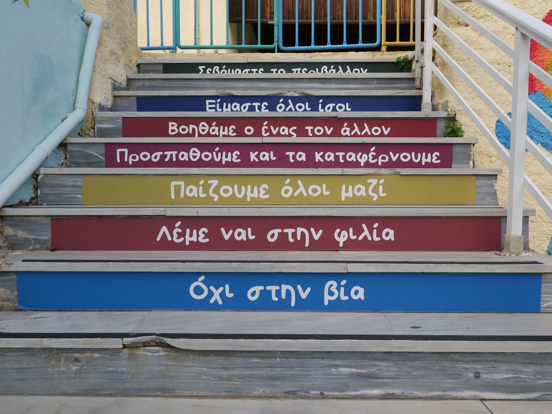 Griechisch, heißt es, ist eine der schwersten Sprachen der Welt. Mag schon sein, aber was bleibt einem übrig, wenn man öfter auf Kreta ist (den dritten Winter übrigens) und nicht mehr den Touristen geben will, der gerade mal „Evcharisto“ und „Kali nichta“ zustande bringt. Also frisch ans Werk, und immer schön die Ohren spitzen, wie die Einheimischen so reden. Doch – aller Anfang ist schwer. Es fängt schon mal damit an, dass Ja „nä“ heißt. „Thelo ena potiri aspro krasi“ sage ich fröhlich in der Dorfkneipe, und die Wirtin entgegnet einsilbig „Nä“. Was habe ich getan, warum will sie mir kein Glas Weißwein geben, schoss es mir anfangs immer erstmal kurz durch den Kopf. Und wenn ich selbst Nein sagen wollte, lag mir schon das „Nä“ auf der Zunge – und nicht das „Ochi“. Die Griechen lieben die langen Wörter – auch schon in der einfachen Alltagssprache. Ganz anders die Engländer, und so ist Englisch auch eine internationale Verkehrssprache. „Use“ zum Beispiel hat man doch viel schneller intus als etwa das griechische Pendant „chrisimopió“. Wortungetüme wie „katapliktikó“ (toll), perissótero (mehr) oder „skampanevásmata“ (Höhen und Tiefen) sind schon in der Lage, den Lernanfängern Respekt einzuflößen. Hinzu kommt die andere Schrift, aber die ist im Vergleich zur Lexik und Grammatik der griechischen Sprache ein eher kleines Hindernis, das man relativ schnell überwindet. Ins Grübeln gerät man aber bei Details wie der Sache mit den fünf „I“. Da gibt es das Ita (Η bzw. η), das Jota (Ι bzw. ι), das Ypsilon (Υ bzw. υ) – und alle klingen sie gleich. Ebenso die zwei weiteren Möglichkeiten, die Kombinationen “ei“ (ει) und „oi“ (οι), die auch nur I-Laute bezeichnen. Wir nannten die drei ersten anfangs das “Buckel-I“, das „normale I“ und das „U-I“. Nur gut, dass man beim Reden nicht überlegen muss, welches „I“ nun an der Reihe ist. Wichtig, ganz wichtig ist die richtige Betonung. „Póte“- betont auf dem O, heißt zum Beispiel „wann“, „poté“, betont auf dem E, hingegen bedeutet „nie“. Glücklicherweise gehören die Betonungszeichen zur Schriftsprache. Generell scheint zu gelten: Ein Wort wird so betont, wie wir als Deutschsprachige es nicht betonen würden. Wie lernt man nun am besten Griechisch? „Auf der Straße“ versichert ein Freund, der vor vielen Jahren nach Kreta ausgewandert ist. „Mit Grammatikpauken“ glaubt ein anderer, der wohl gerne Altphilologe geworden wäre. Mit klassischem Lehrbuch, mit Online-Sprachkursen, mit einfachen Kinderbüchern? Wie auch immer: am besten wohl im Gespräch mit Griechen. Und wenn es am Anfang auch als Sisyphos-Arbeit erscheint, so will ich doch gerne einer Bekannten glauben, die es schon lange geschafft hat: „Irgendwann macht es Klick, und alles ist viel einfacher.“